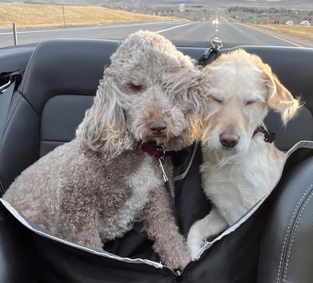 Morty (right) is a seven-year-old labradoodle and Tessa (left) is a very curly eight-year-old golden doodle—both full of energy, especially when it comes to playing fetch and running in the yard.